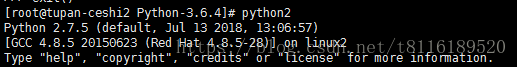 [root@root ~]# cd /usr/bin/ [root@root bin]# ll python* lrwxrwxrwx. 1 root root 7 2月 7 09:30 python -> python2 lrwxrwxrwx. 1 root root 9 2月 7 09:30 python2 -> python2.7 -rwxr-xr-x. 1 root root 7136 8月 4 2017 python2.7
