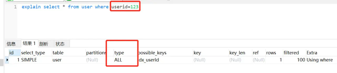 日常开发写SQL的时候,尽量养成这个好习惯呀:写完SQL后,用explain分析一下,尤其注意走不走索引。