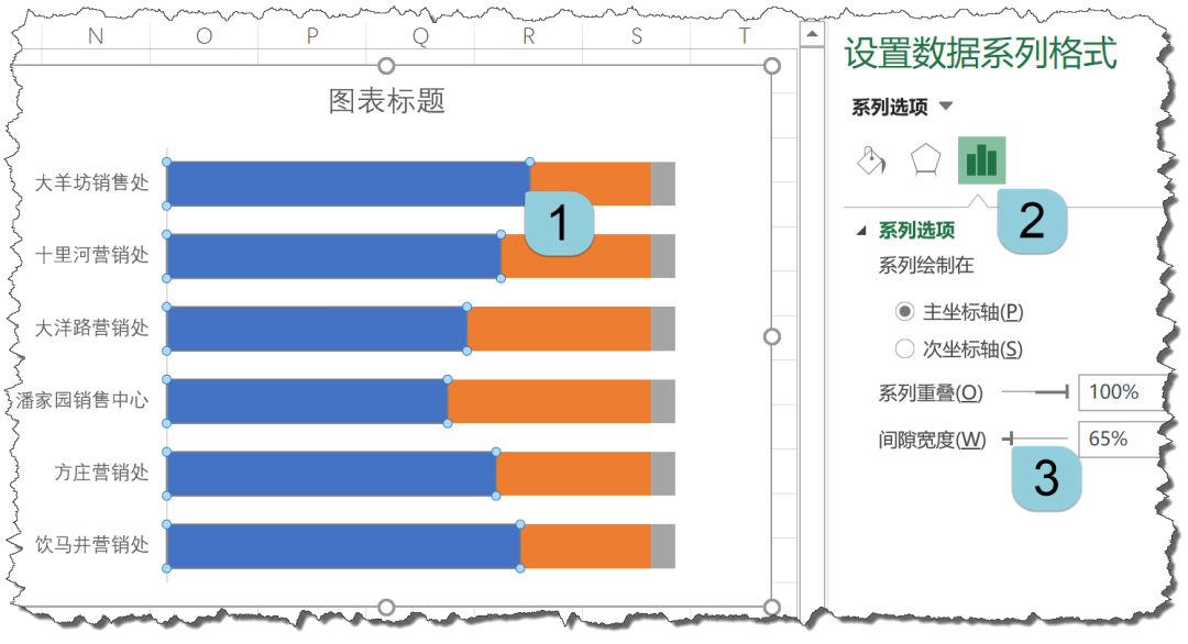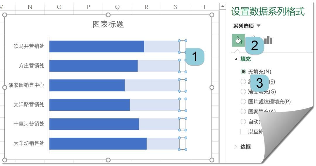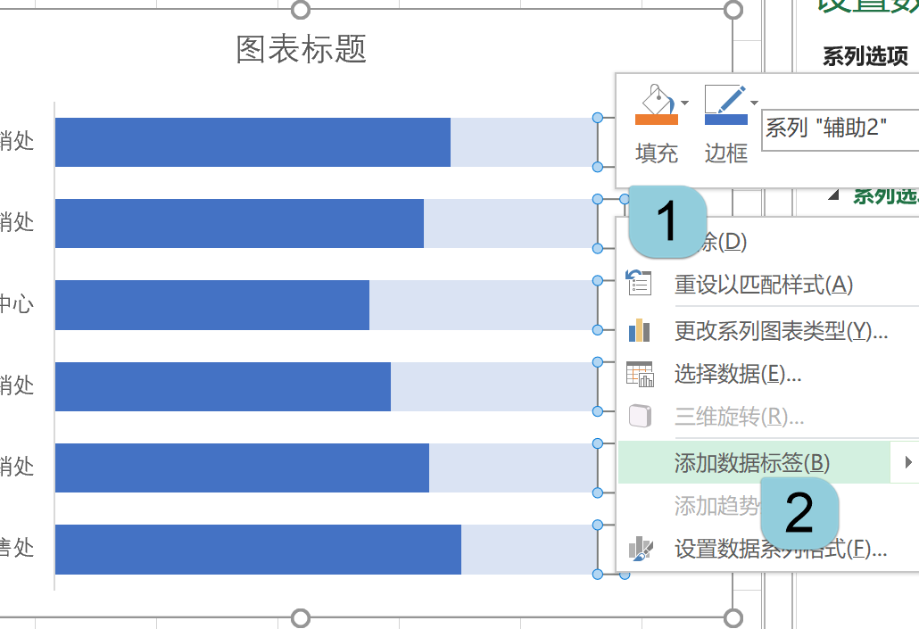 接下来将“辅助1”系列设置成浅一些的颜色,将“辅助2”系列设置成无填充。