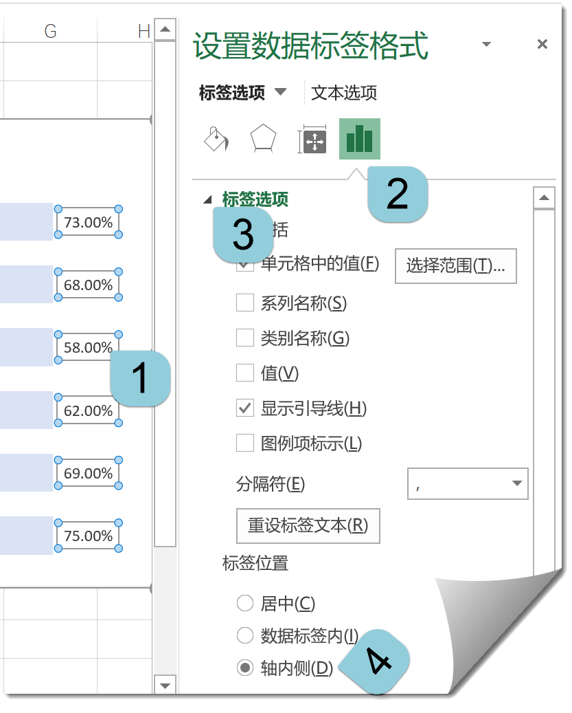 再来调整一下数据标签位置,设置为轴内侧。